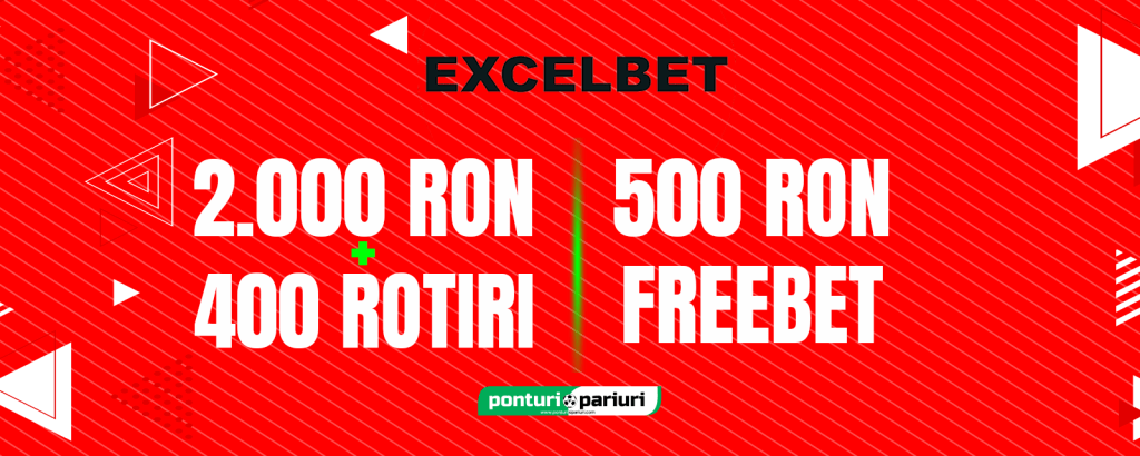 Casino bonus 2000 RON + 400 rotiri gratuite sau 500 RON Freebet